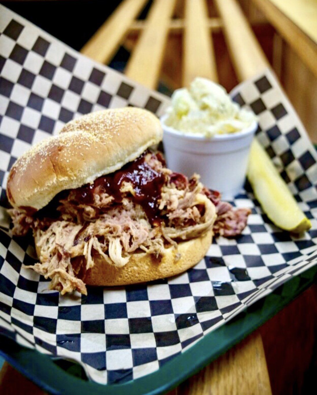 Grabbed food to go and it was AMAZING! The special was pulled rib sandwiches so we got one of those, a pecan praline poundcake, and a three meat plate with brisket, pulled pork, and kielbasa. It was all delicious! We had both the bbq sauce and the mustard sauce, so yummy.